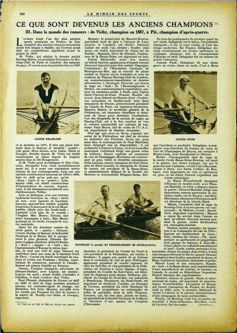 Merci à Marc Ventouillac, journaliste spécialiste de l’aviron au quotidien L’Equipe pour avoir déterré cette pépite racontant le devenir de nos champions « d’avant guerre » (1867/1925).